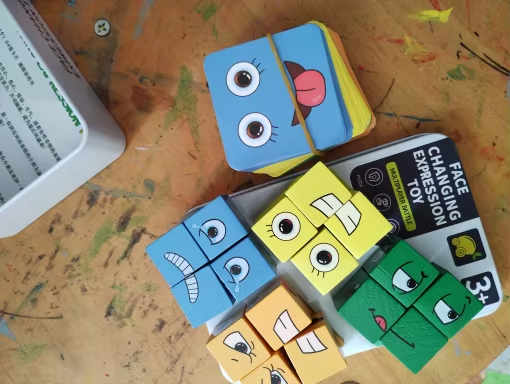بفضل كتل التعبير، يُطوِّر طفلك قدرته على التعرف وفهم وإعادة إنتاج العواطف. هذه اللعبة تعزز إدارة أفضل للمشاعر منذ الصغر.