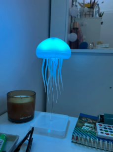 هذه المصباح الجيلي هو جوهرة تصميمية وحسية. إنها تحول أي غرفة إلى كوكب مضيء. أحببت تغيير الألوان كثيرًا 🌈