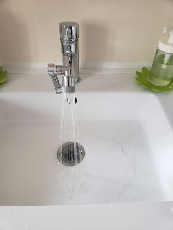 Este grifo revolucionario puede realizar una rotación de 1080°. Así puedes doblarlo a tu gusto, permitiendo que el agua fluya en cualquier rincón del fregadero. Fabricado con materiales de alta calidad, este grifo cuenta con un mecanismo simple pero potente que asegura un flujo fácil del agua.