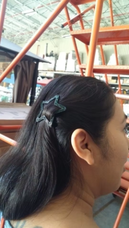 Ja, den solide klipsen holder perfekt selv på voluminøst hår.