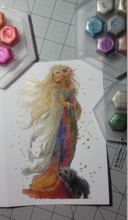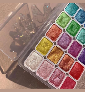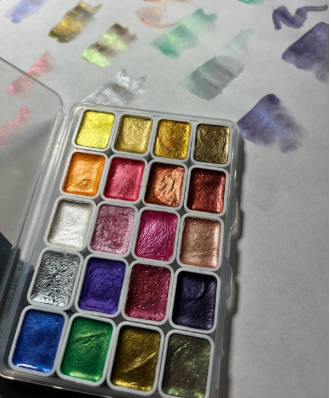Da, se amestecă ușor cu acuarele clasice pentru a crea reflexii perlate.