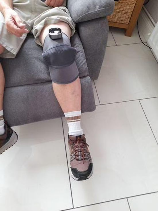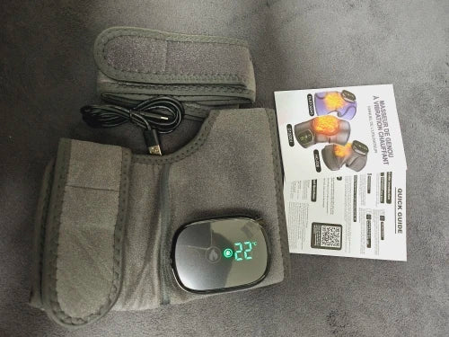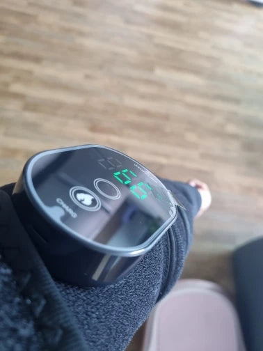 Det är bara att sätta på den på det målade området (knä, armbåge eller axel), välja värmenivå via pekskärmen och låta den verka.